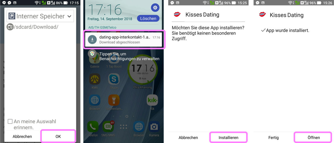 Nachdem der Download abgeschlossen ist, fragt das Handy, ob Sie die App installieren möchten oder Sie müssen zur Download-Leiste gehen und doppelklicken, um die Installation zu starten. download-mobile-dating-app